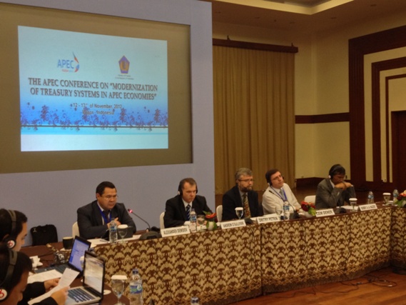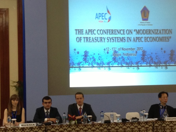 Данная конференция организована Федеральным казначейством совместно с Казначейством Республики Индонезия; она является заключительной в рамках председательства Российской Федерации в форуме АТЭС и в то же время первой на время председательства Республики Индонезия вфоруме АТЭС.