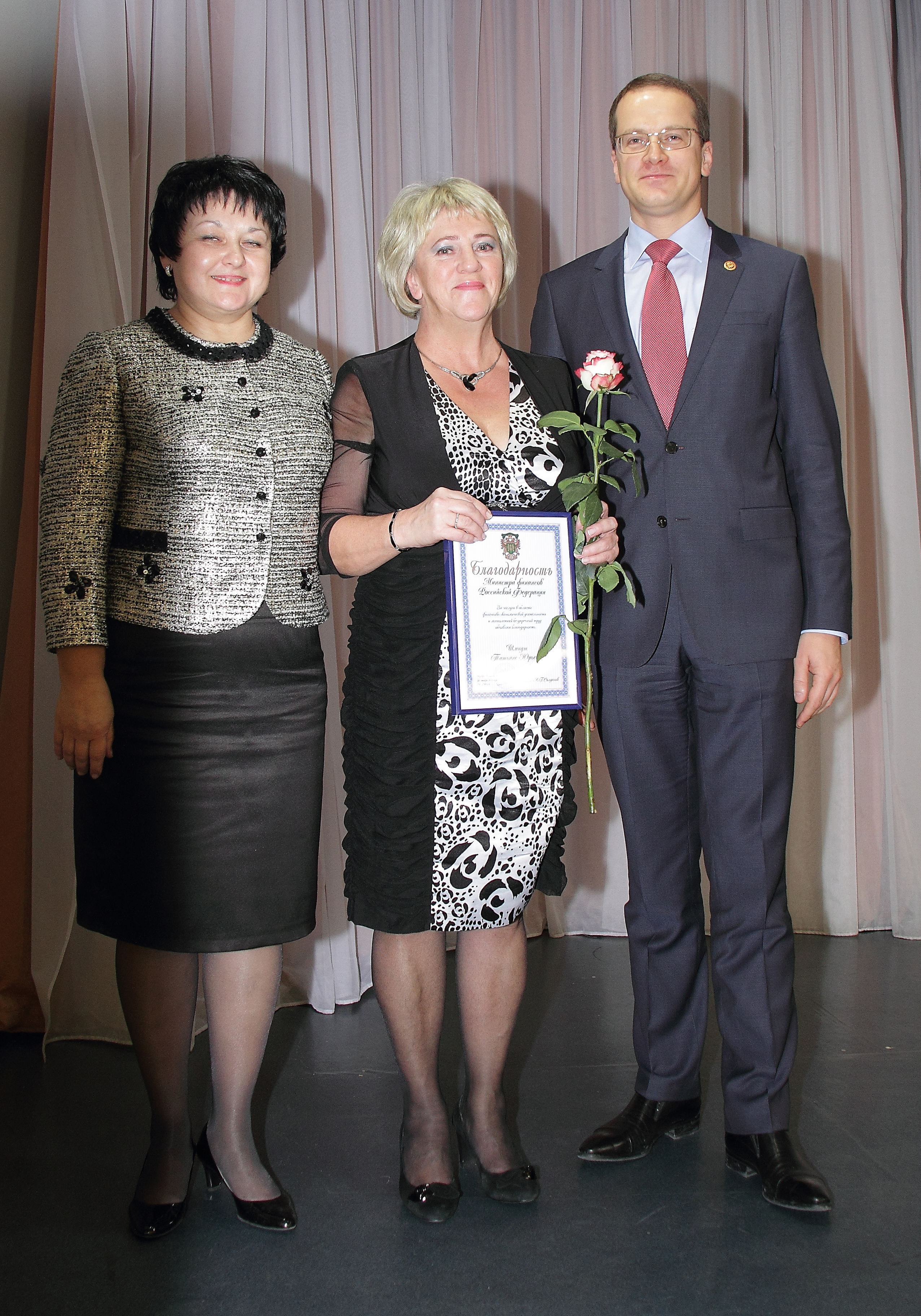 А.М. Гурович огласил приветствие руководителя Федерального казначейства Р.Е. Артюхина, вручил Благодарность министра финансов Российской Федерации и ведомственные награды Федерального казначейства сотрудникам Управления.