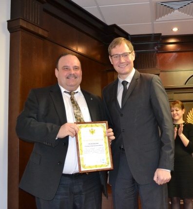 Руководитель Федерального казначейства Р.Е. Артюхин наградил сотрудников ведомственными наградами за безупречную и эффективную гражданскую службу, заслуги в области финансово-экономической деятельности, качественное исполнение планов и заданий, а также в связи с празднованием в 2012 году юбилейной даты, посвященной 20-летию со дня возрождения казначейской системы в Российской Федерации.