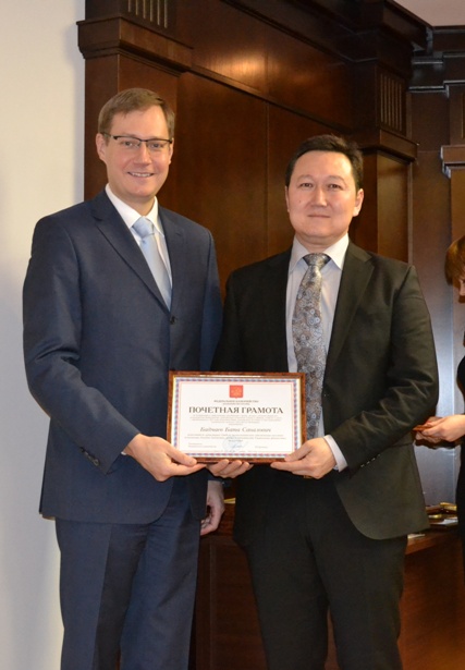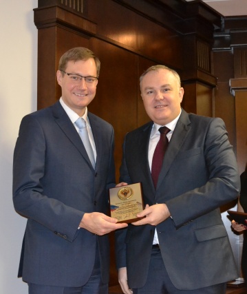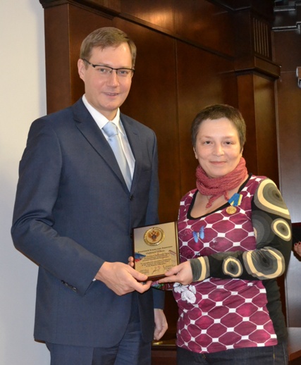 Руководитель Федерального казначейства Р.Е. Артюхин наградил сотрудников ведомственными наградами за безупречную и эффективную гражданскую службу, заслуги в области финансово-экономической деятельности, качественное исполнение планов и заданий, а также в связи с празднованием в 2012 году юбилейной даты, посвященной 20-летию со дня возрождения казначейской системы в Российской Федерации.