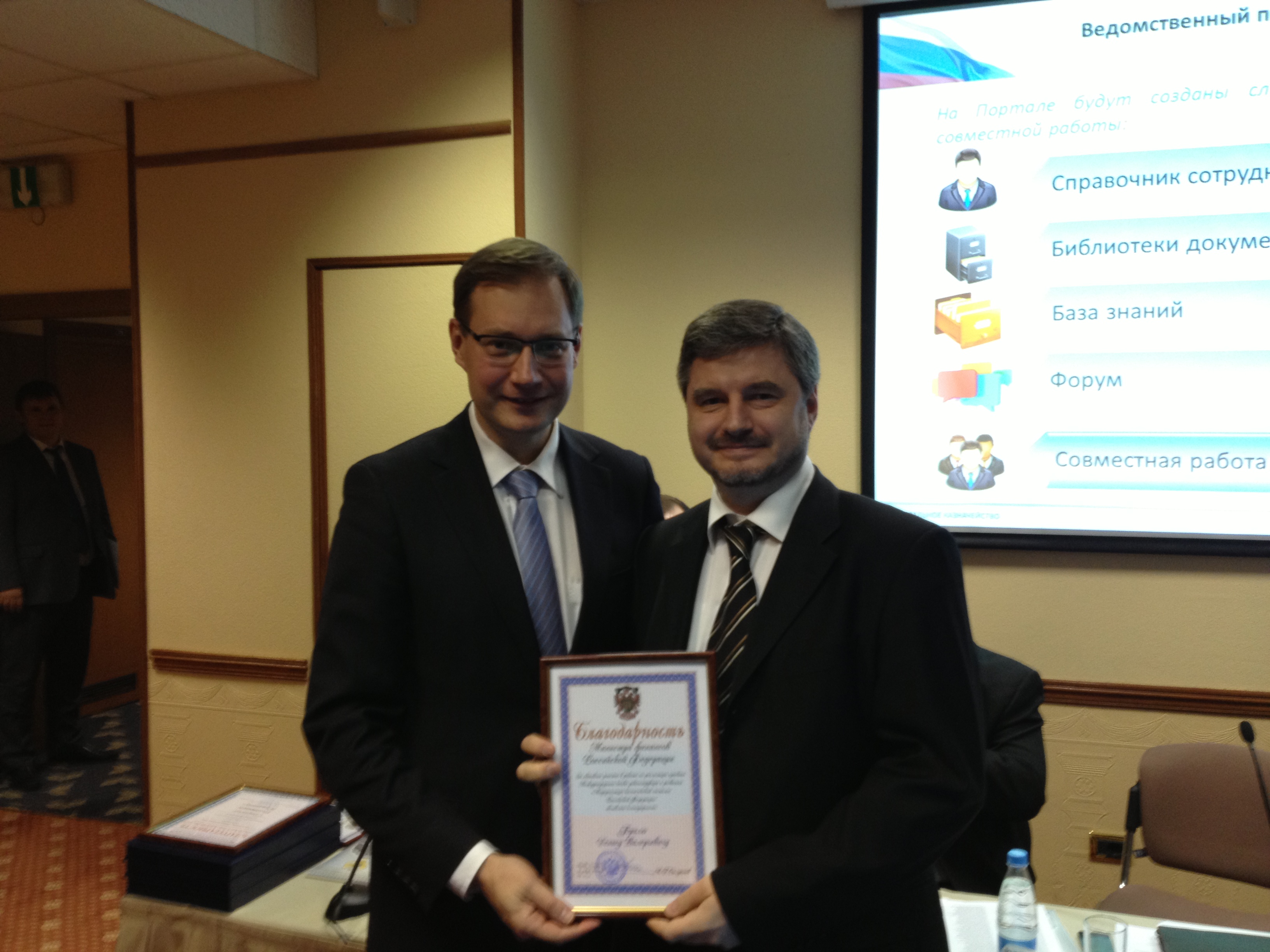 В завершении руководитель Федерального казначейства Р.Е. Артюхин вручил ведомственные награды Министерства финансов Российской Федерации и Счетной палаты Российской Федерации.