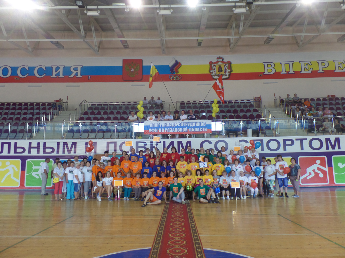 02 августа 2014 г. в рамках реализации Концепции молодежной политики Федерального казначейства на второе полугодие 2014года, а также в целях создания сплоченного коллектива, привлечения внимания молодежи к спорту, развития неформальных связей между сотрудниками, Молодежным советом Управления Федерального казначейства по Рязанской области (далее – Управление) совместно с Первичной профсоюзной организацией общероссийского профессионального союза казначеев России в физкультурно – спортивном комплексе «Арена» р.п. Шилово Рязанской области была проведена спартакиада. Соревнования проводились в 6 дисциплинах, в личном и командном зачетах.