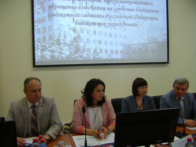 С приветственным словом к участникам совещания обратилась начальник Юридического управления Федерального казначейства С.Н. Сауль. Она обозначила актуальность заявленной тематики, подчеркнув при этом важность активного участия при проведении круглых столов, а также пожелала всем плодотворной и успешной работы.