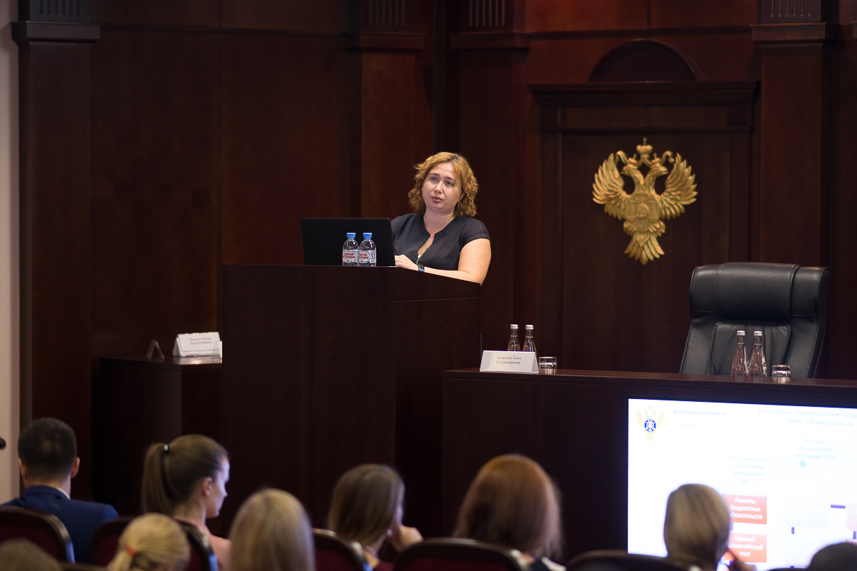 - Заместитель начальника Управления интегрированных информационных систем государственных финансов А.В. Залялова выступила с темой: «Участие Федерального казначейства в создании и развитии государственной интегрированной информационной системы управления общественными финансами «Электронный бюджет». Перспективы применения для финансово-бюджетного надзора»;