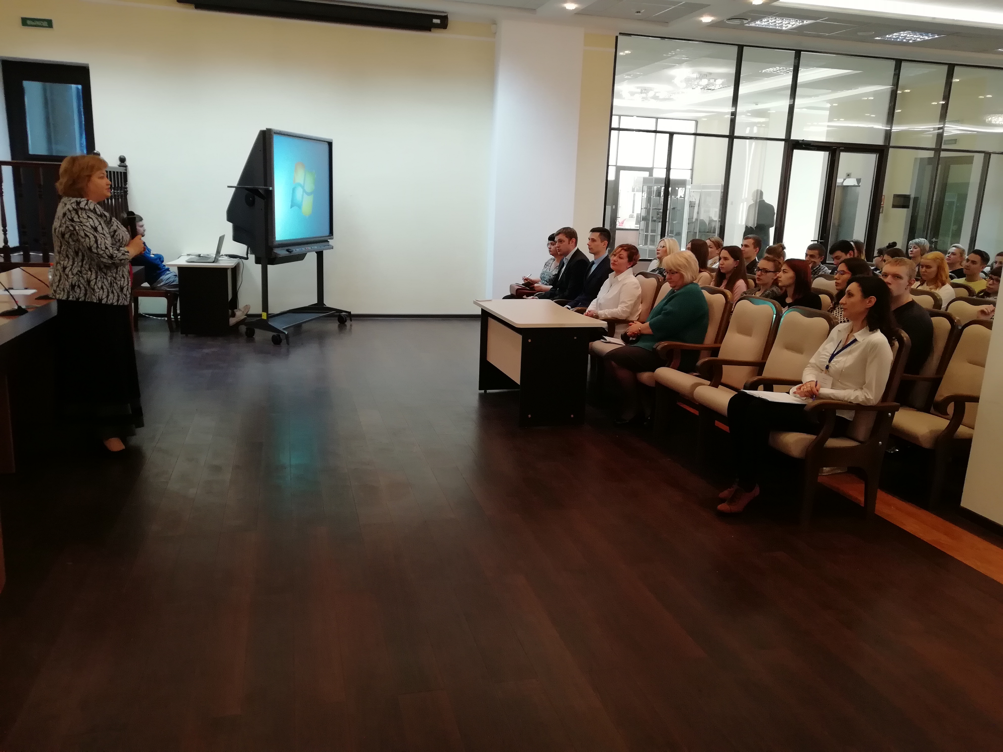 По завершению экскурсии перед гостями выступила руководитель УФК по Орловской области Т.И. Степина, которая рассказала об истории создания казначейской системы, а также о взаимодействии УФК по Орловской области с орловскими ВУЗами и об особенностях казначейской работы. Заместитель руководителя Управления Д.Х. Ян подробно рассказал о задачах, решаемых Казначейством России и УФК по Орловской области, о достигнутых результатах и о перспективах развития.