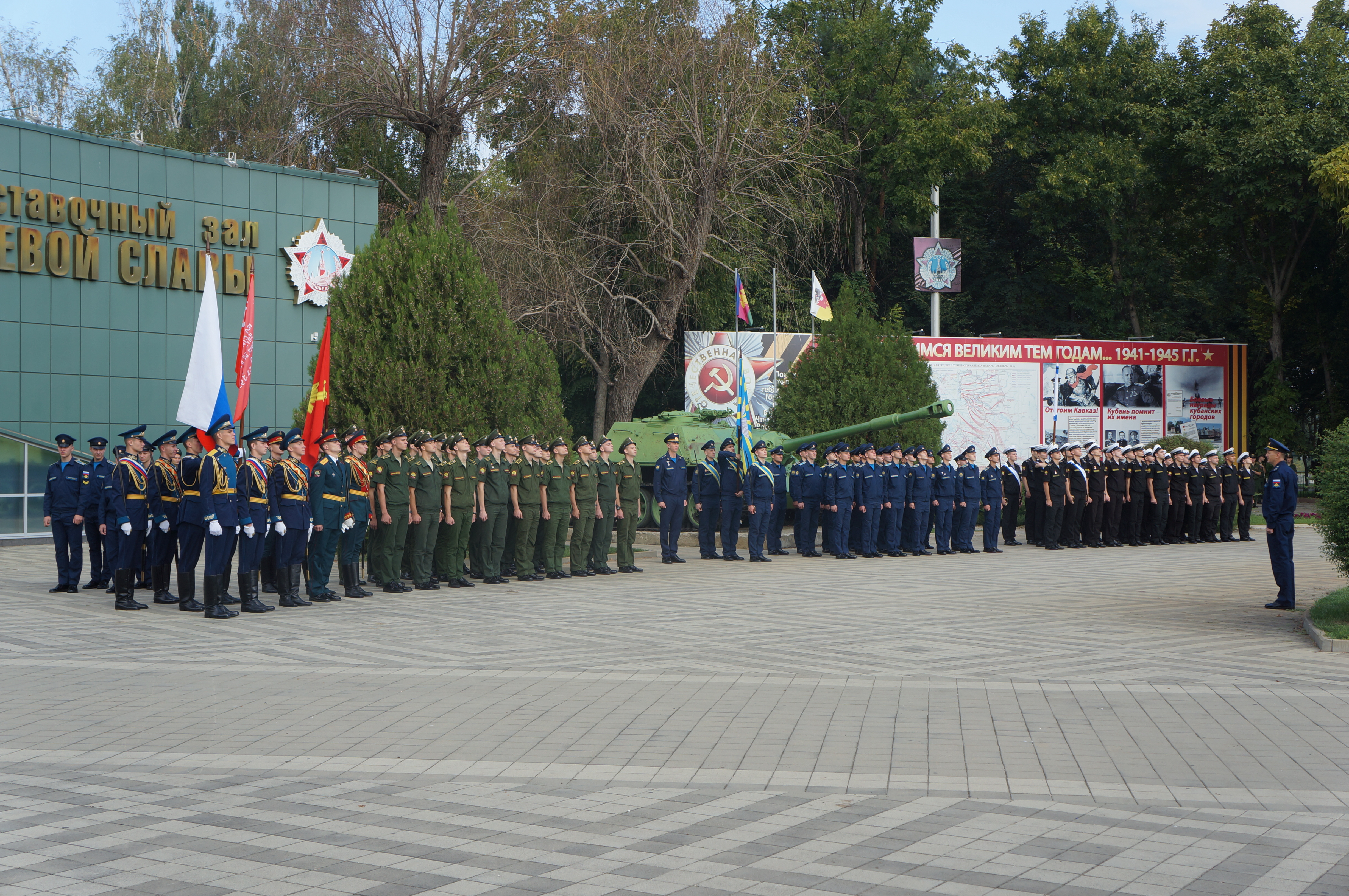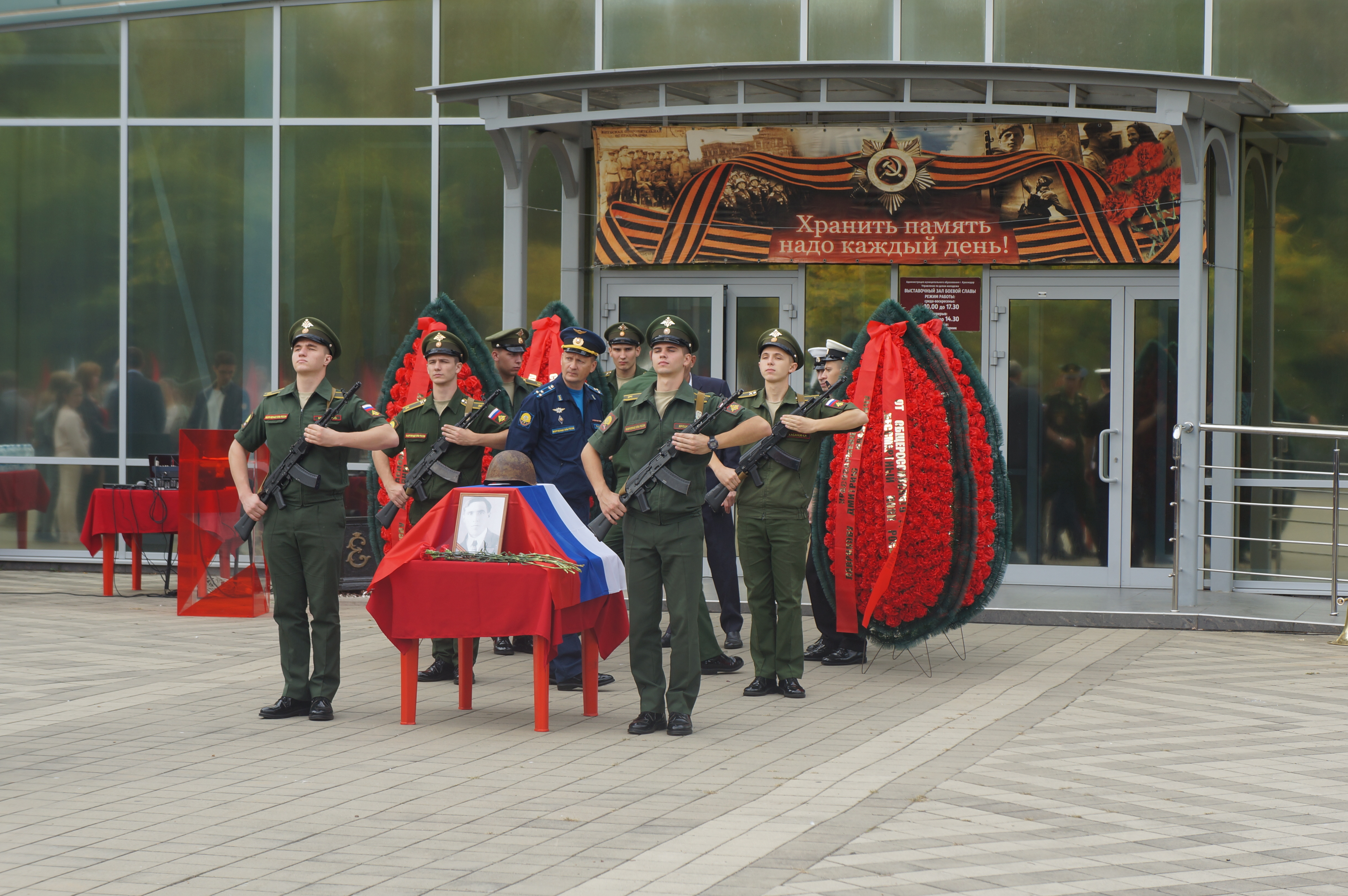 Торжественная церемония передачи останков красноармейца родственникам прошла на площади у Выставочного зала Боевой славы города Краснодара в Парке им. 30-летия Победы.