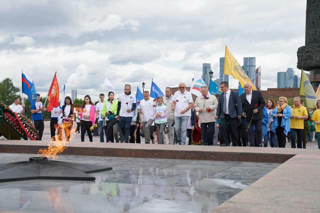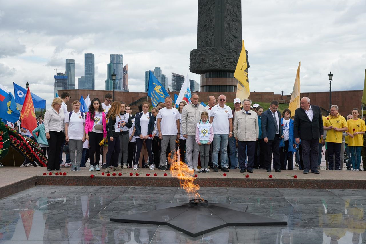 Кроме того, участники забега возложили цветы к Вечному огню мемориального комплекса «Поклонная гора», почтили память погибших минутой молчания, отдав дань уважения и благодарности воинам, павшим на фронтах Великой Отечественной войны 1941-1945 годов.