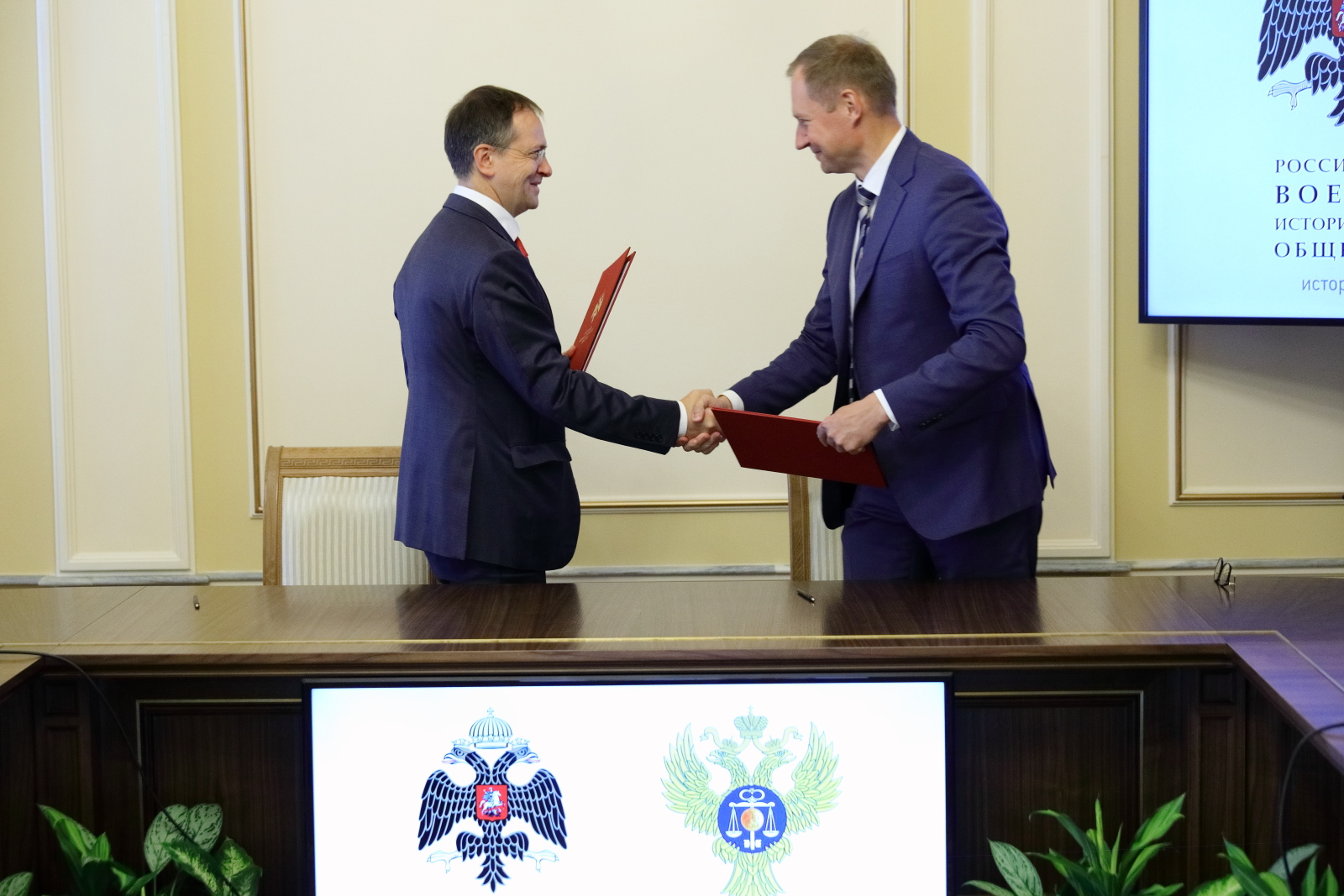 Документ подписали руководитель Федерального казначейства Роман Артюхин и Председатель Российского военно-исторического общества, Министр культуры Российской Федерации Владимир Мединский.
