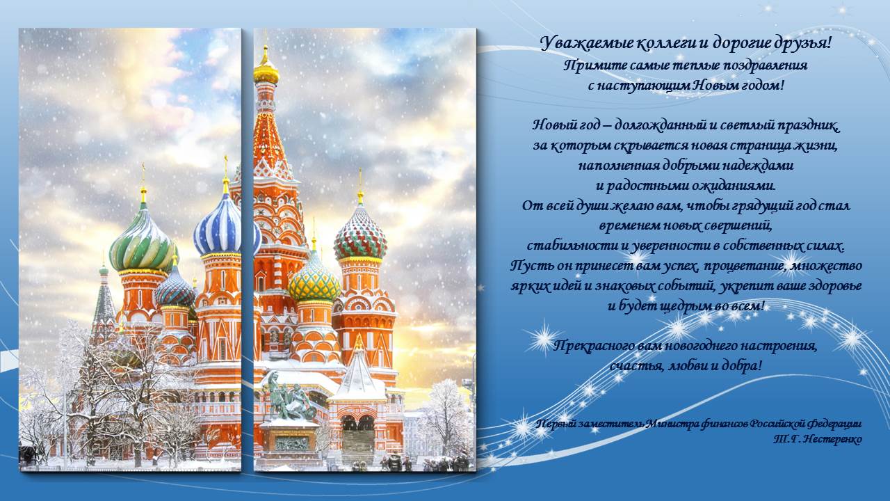 Поздравление с Новым годом Первого заместителя Министра финансов Российской Федерации Т.Г. Нестеренко