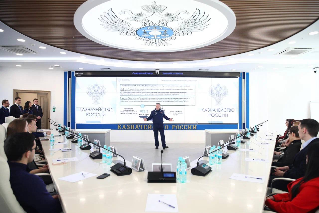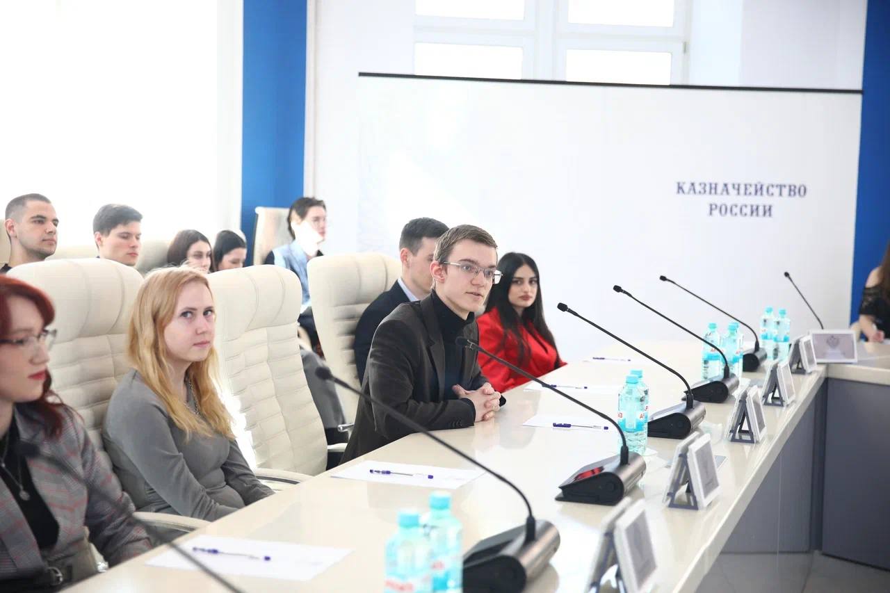 Руководитель Казначейства России Роман Артюхин поприветствовал ребят, сформировал представление студентов о работе Казначейства России, о государственной службе.