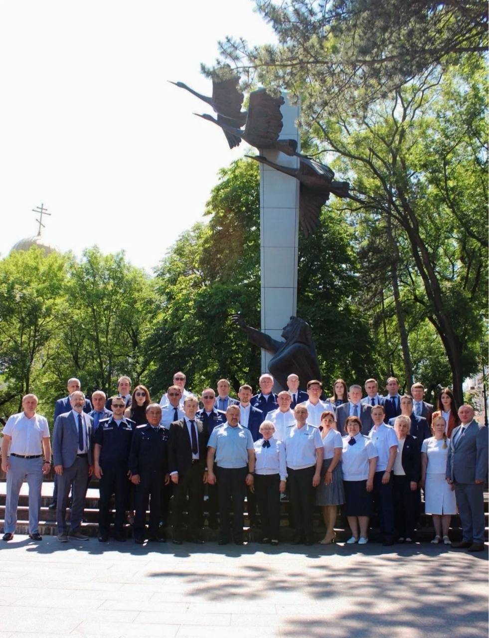 В знак вечной памяти и благодарности участники мероприятия склонили головы перед памятником, символизирующим души погибших солдат, взлетающих в небо в образе белых журавлей.