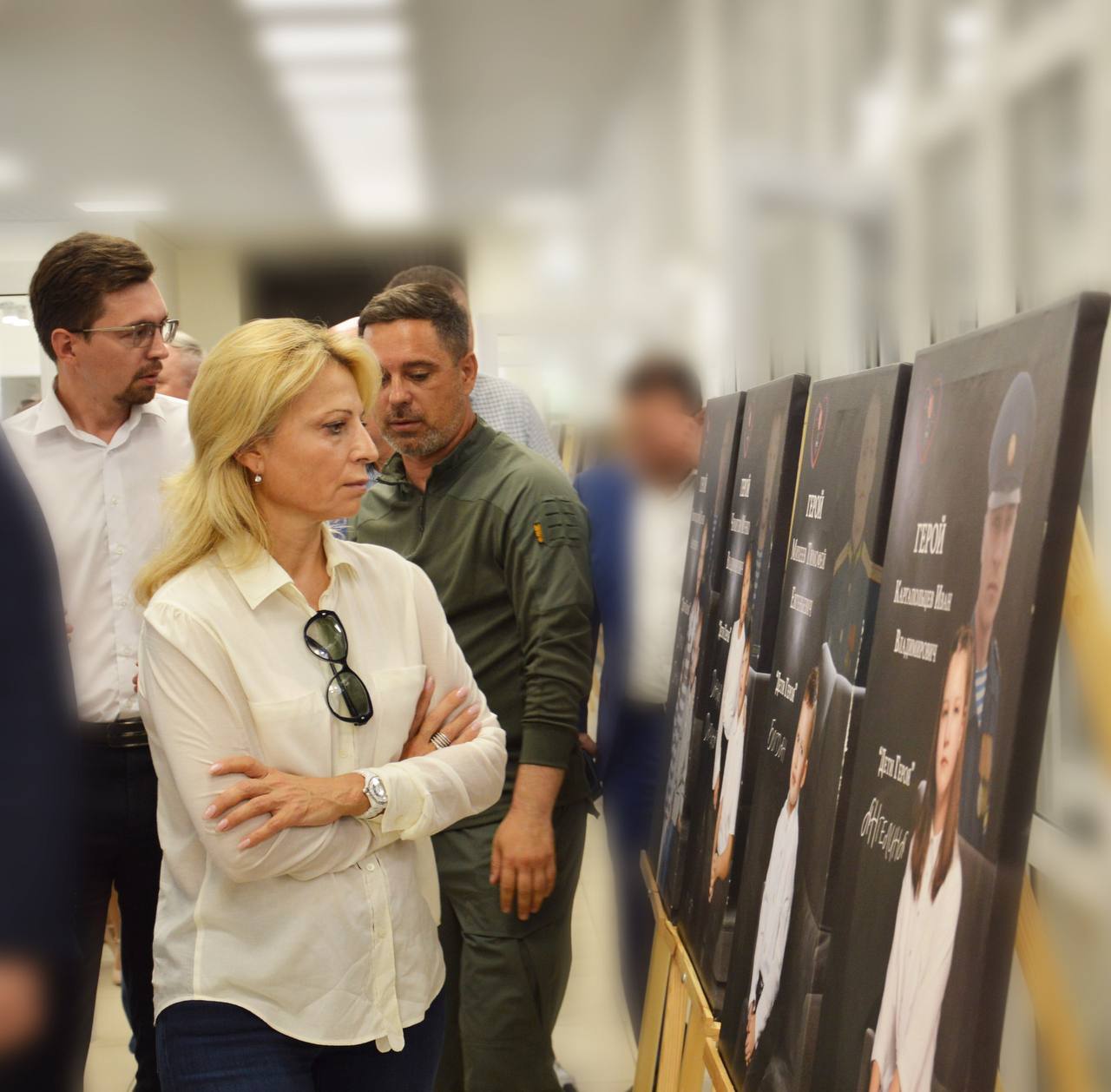 Для делегации была организована экскурсия по зданию и продемонстрирована фотоэкспозиция на тему «Дети героев», включающая 11 работ (портреты детей и их отцов, погибших на СВО). В детских глазах, так поразительно похожих на отцовские — боль потери и в то же время — гордость за них.