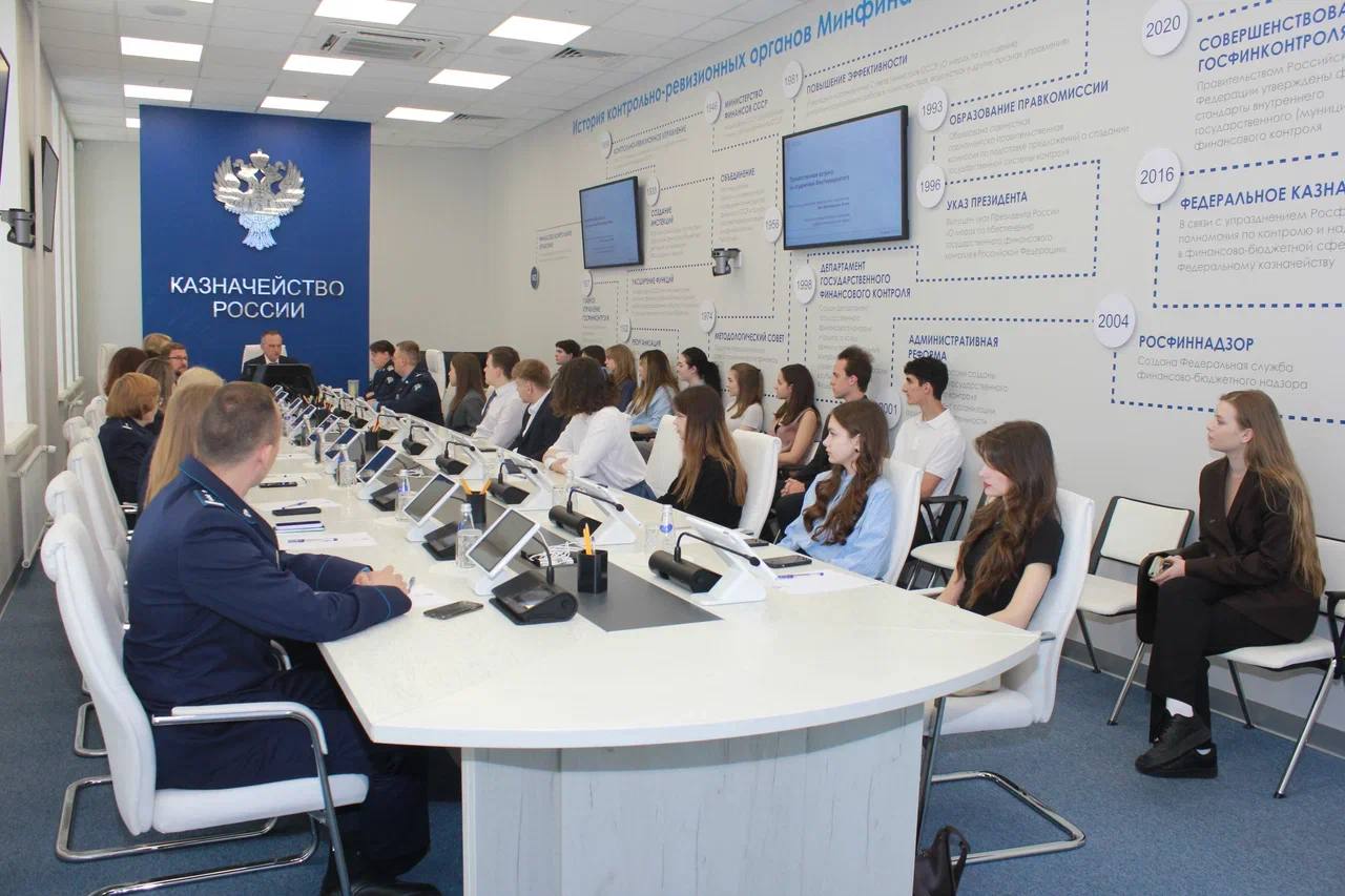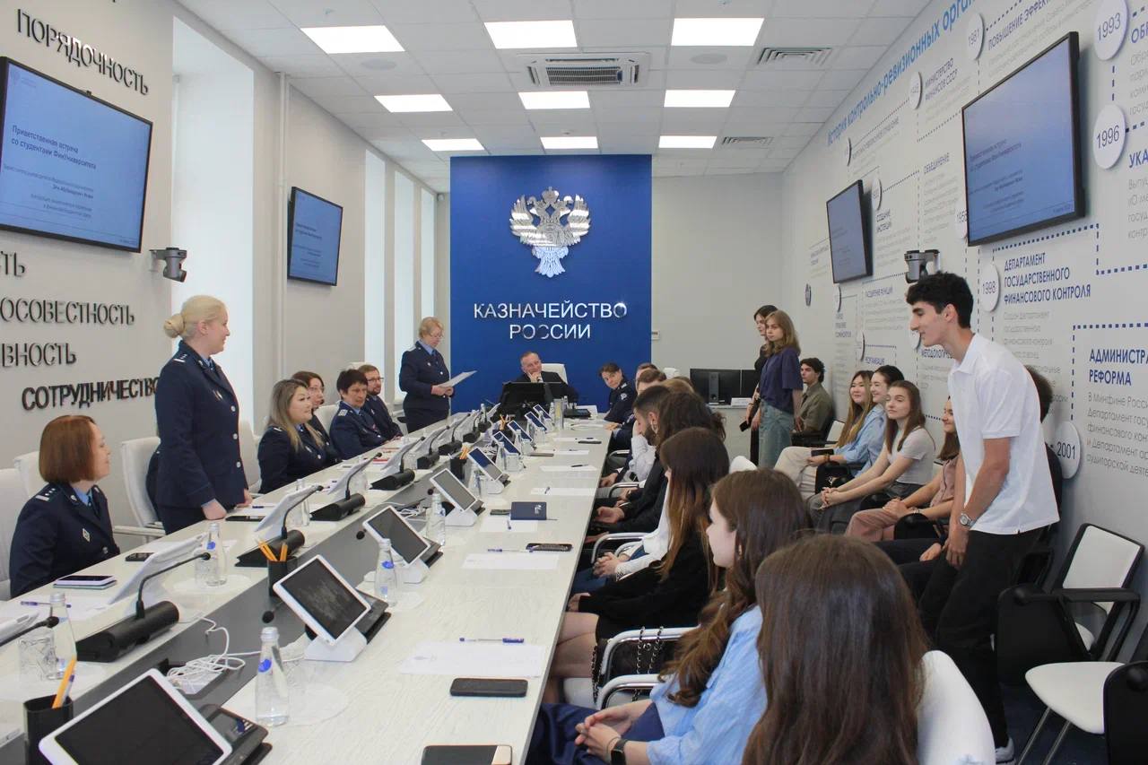 В завершение мероприятия сотрудники контрольного блока провели для студентов экскурсию по зданию Казначейства России, рассказали о казначейской системе.