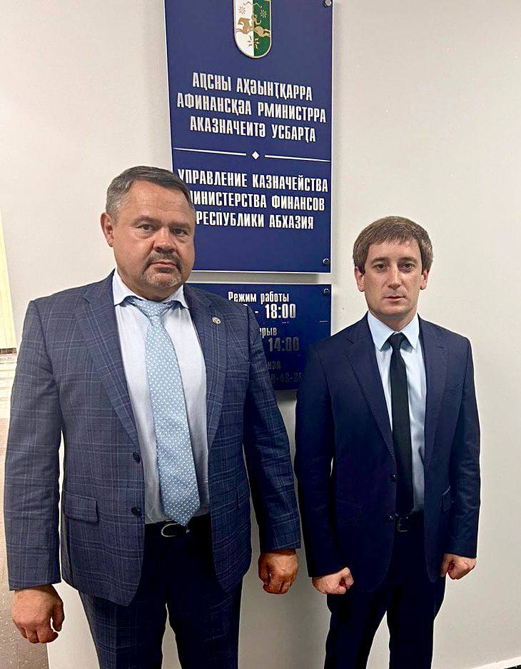 В завершении визита состоялась рабочая встреча делегации Казначейства России с начальником Управления казначейства Министерства финансов Республики Абхазия Апсыртом Цвижба, на которой обсуждены актуальные вопросы сотрудничества в рамках Меморандума о техническом сотрудничестве между Казначейством России и Министерством финансов Республики Абхазия.