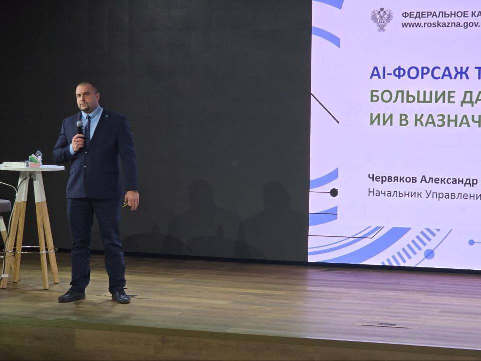 Среди представителей госсектора, ФОИВ и госкорпораций Александр Червяков поделился опытом внедрения AI в бизнес-процессы Казначейства и рассказал, как мультиагентные системы повышают эффективность управления национальными проектами.