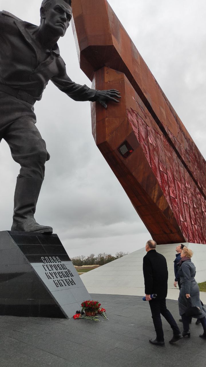 Также делегация посетила мемориальный комплекс «Курская битва» в поселке Поныри, где состоялось возложение цветов к памятнику Советскому солдату.