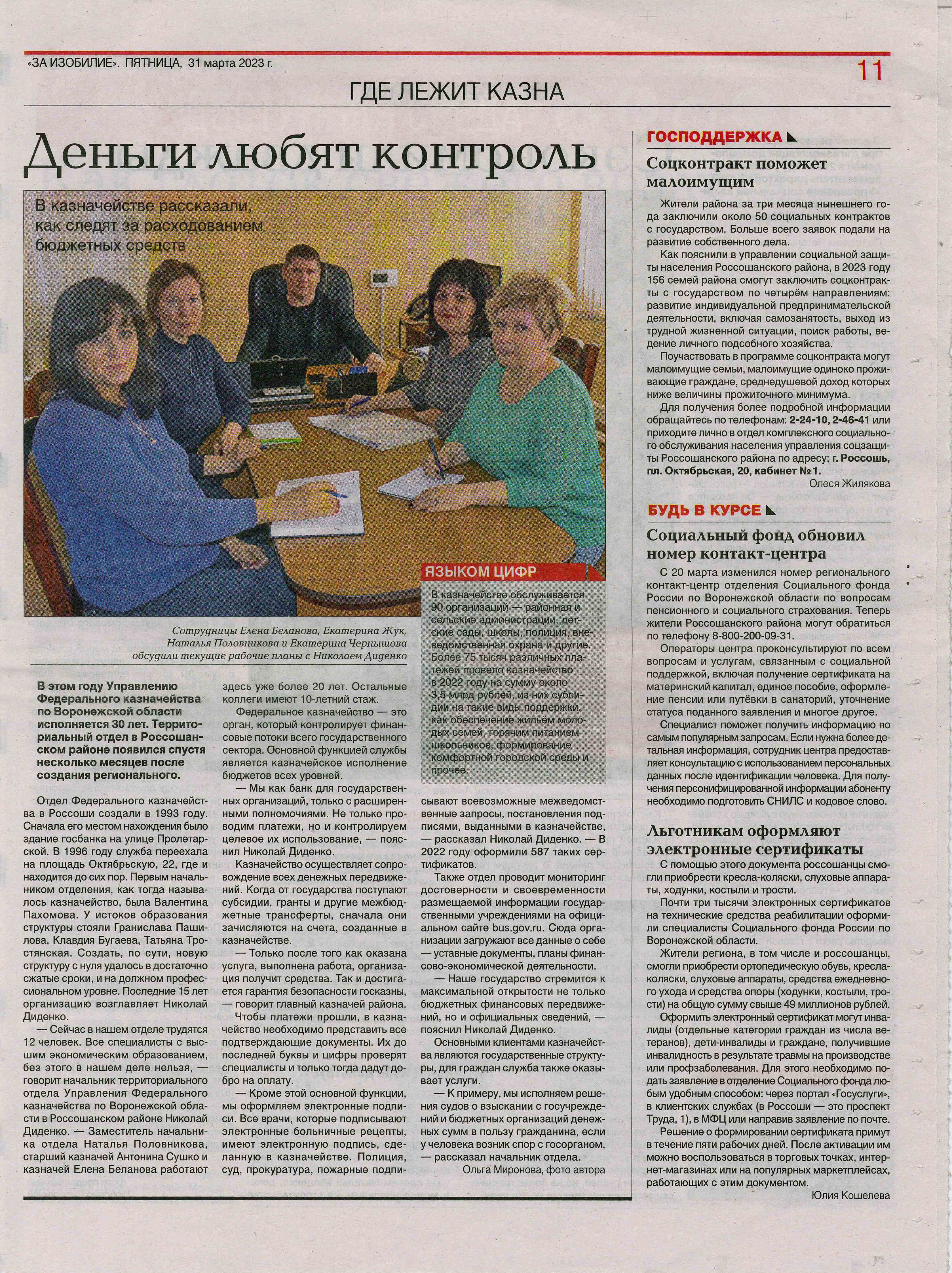 Статья УФК по Воронежской области "Деньги любят контроль", газета "За изобилие"